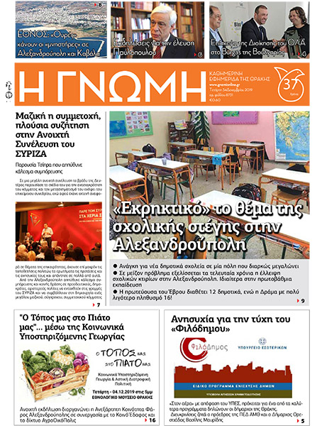 Τετάρτη 4 Δεκεμβρίου – Αρ.φύλλου 8731 ΓΝΩΜΗ Εκδόσεις 4 Δεκεμβρίου 2019 by Η Γνωμη 0Likes Εάν είστε συνδρομητής κάντε κλικ στο πρωτοσέλιδο για να ξεφυλλίσετε. Για να εγγραφείτε συνδρομητής, κάντε κλικ εδώ