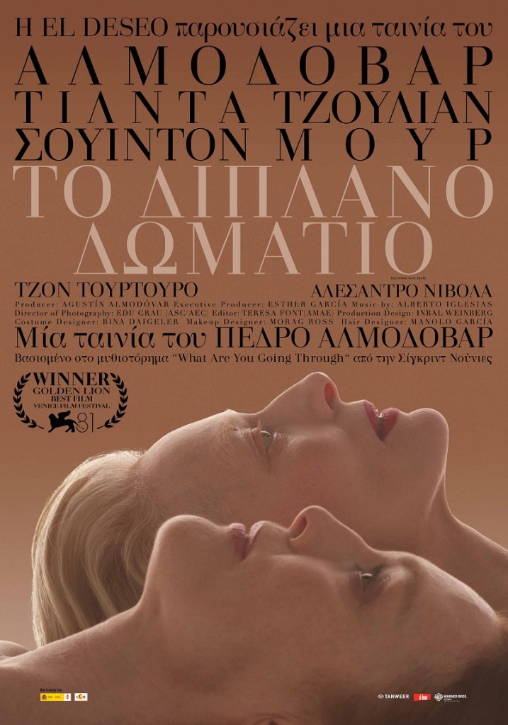 Έρχεται η υποψήφια για Χρυσή Σφαίρα Κοινωνική ταινία, «Το Διπλανό Δωμάτιο» του Πέδρο Αλμοδόβαρ (Γυναίκες στα Πρόθυρα Νευρικής Κρίσης, Ψηλά Τακούνια, Όλα για τη Μητέρα μου, Μίλα της, Κακή Εκπαίδευση, Γύρνα Πίσω, Ραγισμένες Αγκαλιές, Το Δέρμα που Κατοικώ, Julieta, Πόνος & Δόξα, Παράλληλες Μητέρες) με τους Τζούλιαν Μουρ, Τίλντα Σουίντον, Τζον Τουρτούρο, Αλεσάντρο Νίβολα & Άλεξ Χου Άντερσεν…