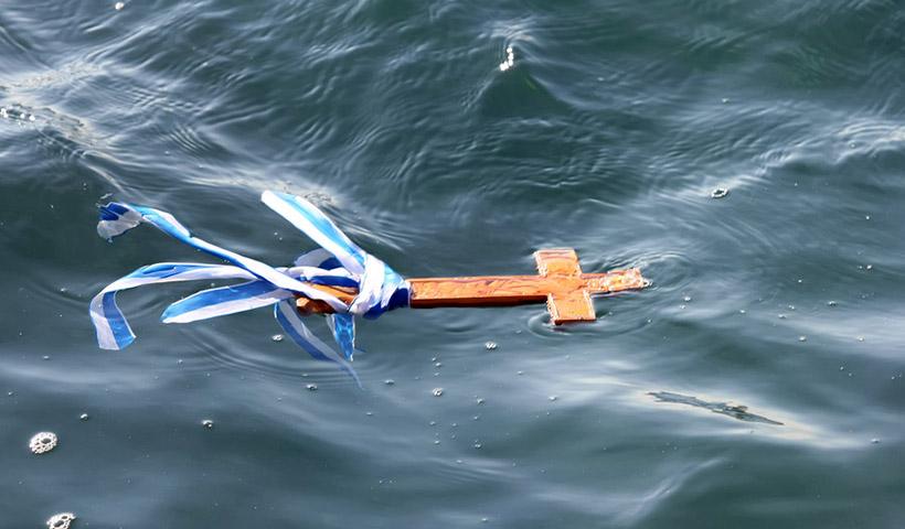 Ο ιερέας ρίχνει τον Σταυρό στη θάλασσα ή στο ποτάμι (όπου δεν υπάρχουν, αγιάζονται δεξαμενές με νερό, όπως στην Αθήνα), κατά μίμηση της Βάπτισης του Θεανθρώπου. Οι νέοι πέφτουν για να τον πιάσουν, ενώ θεωρείται ευλογία για εκείνον που θα τον πιάσει και την οικογένειά του.