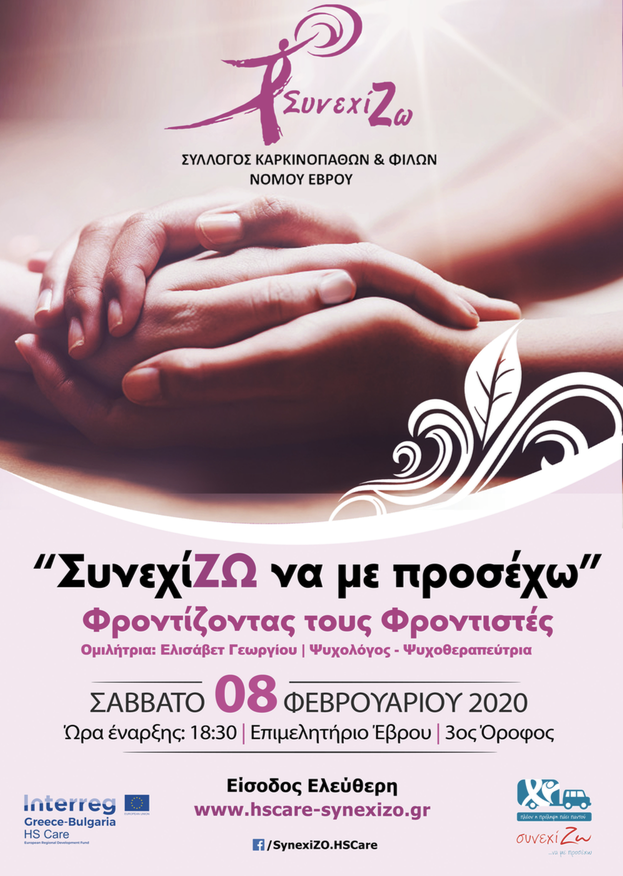 Ο Σύλλογος Καρκινοπαθών & Φίλων Νομού Έβρου «ΣυνεχίΖΩ» διοργανώνει στην Αλεξανδρούπολη τον 3ο κύκλο Εκπαιδευτικών Δωρεάν Σεμιναρίων για Ψυχολόγους & Κοινωνικούς Λειτουργούς , το Σάββατο 8 και την Κυριακή 9 Φεβρουαρίου 2020
