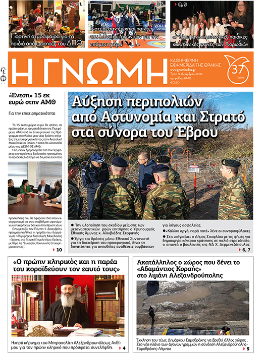 Τρίτη 17 Δεκεμβρίου – Αρ.φύλλου 8740 ΓΝΩΜΗ Εκδόσεις 16 Δεκεμβρίου 2019 by Η Γνωμη 0Likes Εάν είστε συνδρομητής κάντε κλικ στο πρωτοσέλιδο για να ξεφυλλίσετε. Για να εγγραφείτε συνδρομητής, κάντε κλικ εδώ
