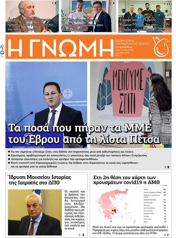Τρίτη 7 Ιουλίου – Αρ.φύλλου 8873 ΓΝΩΜΗ Εκδόσεις 6 Ιουλίου 2020 by Η Γνωμη 1Like Εάν είστε συνδρομητής κάντε κλικ στο πρωτοσέλιδο για να ξεφυλλίσετε. Για να εγγραφείτε συνδρομητής, κάντε κλικ εδώ