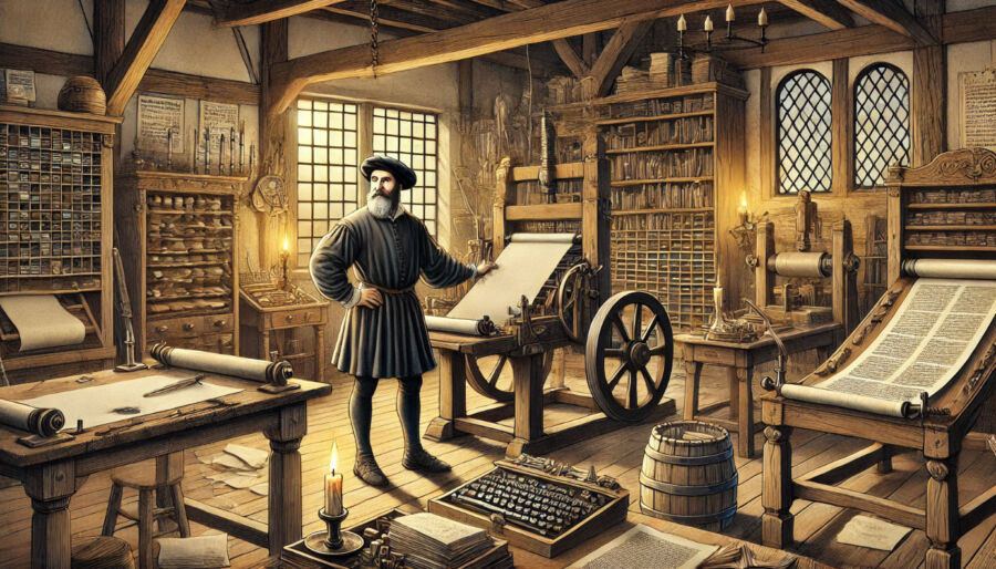 Με την εφεύρεση του Γουτεμβέργιου εκτυπώθηκε για πρώτη φορά η Βίβλος στα γερμανικά μεταφρασμένη από τον Λούθηρου Μαρτίνο και άνοιξε ο δρόμος για την Θρησκευτική Μεταρρύθμιση