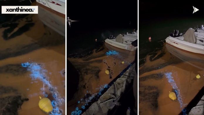 Όταν το νερό κινείται —από τον παλμό του κύματος ή την κίνηση των σκαφών— οι οργανισμοί αυτοί αντιδρούν χημικά και εκπέμπουν μια εντυπωσιακή μπλε λάμψη.